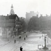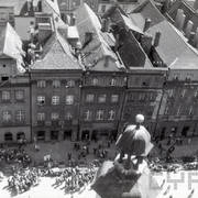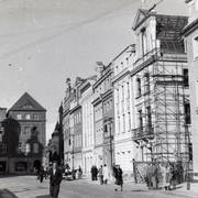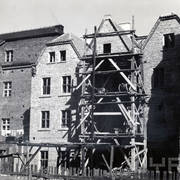 Odbudowa wieży ratusza zniszczonej w wyniku działań wojennych, na pierwszym planie zniszczony Odwach i zabudowa śródrynkowa od strony południowej10.1947