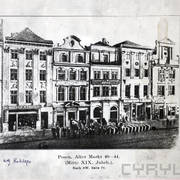 Ratusz na Starym Rynku na drzeworycie Boczkowskiego z połowy XIX wieku wykonanym według sztychu Juliusza Fretera i opublikowanym w "Tygodniku Ilustrowanym" z 1884 roku