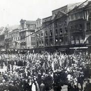 Fragment dekoracji sklepienia Sali Odrodzenia (Wielkiej Sieni) w ratuszu przedstawiającej biblijnego Samsona symbolizującego siłę w walce z wrogiem01.01.1926