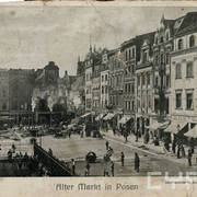 Remont nawierzchni Starego Rynku, z prawej zachodnia pierzeja Starego Rynku od Neuestrasse (obecnie ul. Paderewskiego) do Franziskanerstrasse (ul. Franciszkańska), na wprost fragment pierzei południowej, przed 1911 rokiem