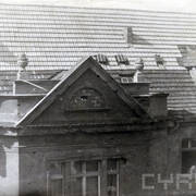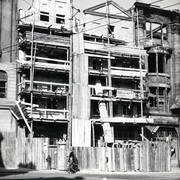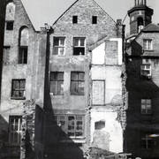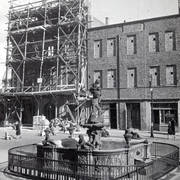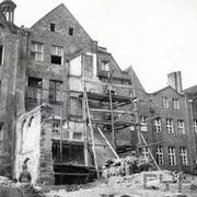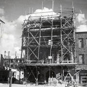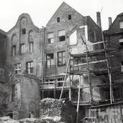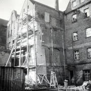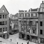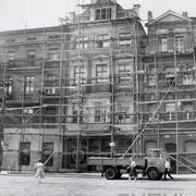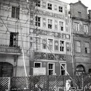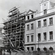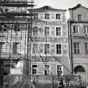Rusztowania ustawione w czasie odbudowy kamienic nr 71 i 72 (na pocz. XX wieku połączone w jedną kamienicę) w zachodniej pierzei Starego Rynku zniszczonych w czasie działań wojennych26.03.1953