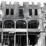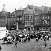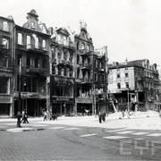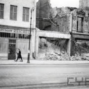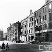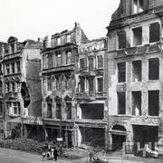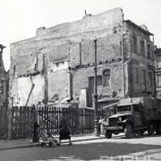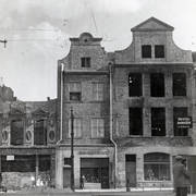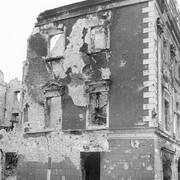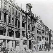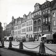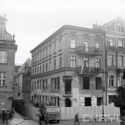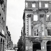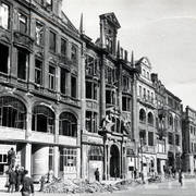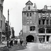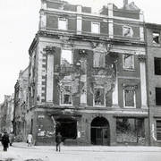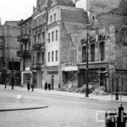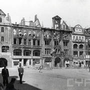 Kamienica nr 70 (z lewej) i zniszczona w czasie działań wojennych kamienica nr 71/72 w zachodniej pierzei Starego Rynku, z lewej wylot ul. Paderewskiego07.06.1945