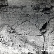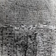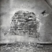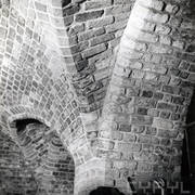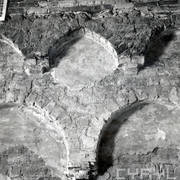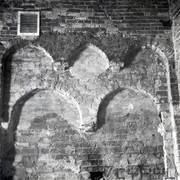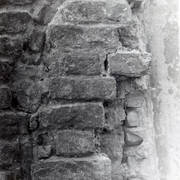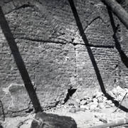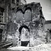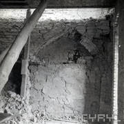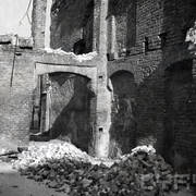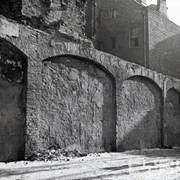 Odsłonięte w wyniku zniszczeń wojennych zamurowane wnęki gotyckie w murze grodziżarowym w kamienicy nr 79 od strony sąsiedniej kamienicy nr 80 w zachodniej pierzei Starego Rynku22.04.1953