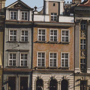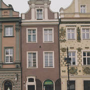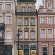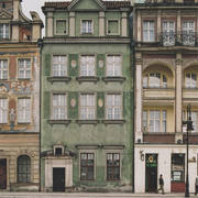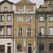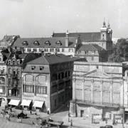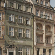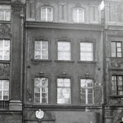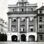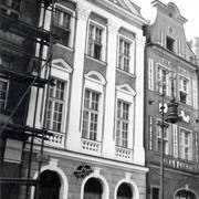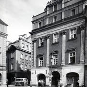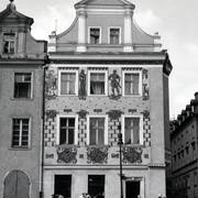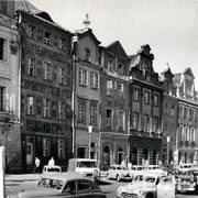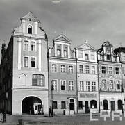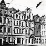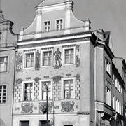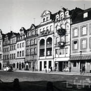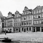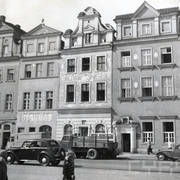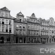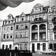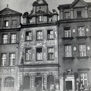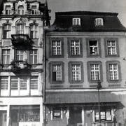 Kamienica nr 63 w południowej pierzei Starego Rynku, z lewej zachowana kamienica nr 62, z prawej całkowice zniszczona w czasie działań wojennych kamienica nr 64