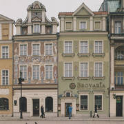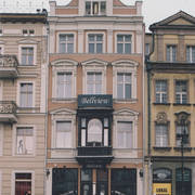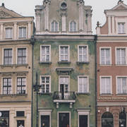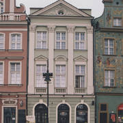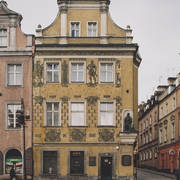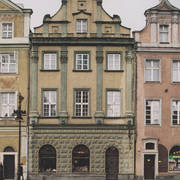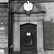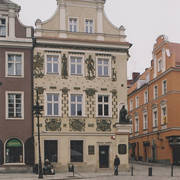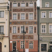 Portal kamienicy nr 73/74 w zachodniej pierzei Starego Rynku (dawna siedziba Banku Przemysłowców), kamienica powstała według projektu Rogera Sławskiego po wyburzeniu w 1908 roku dwóch kamienic