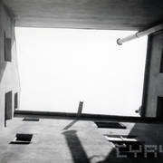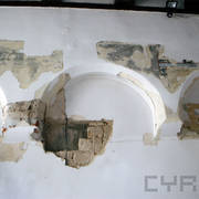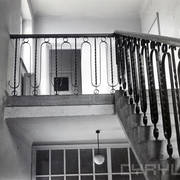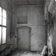 Wnętrze kamienicy nr 41 w pierzei wschodniej Starego Rynku w czasie powojennej odbudowy, oficyna boczna na pierwszym piętrze z fryzem arkadkowym na ścianie północnej05.1955