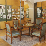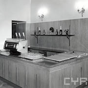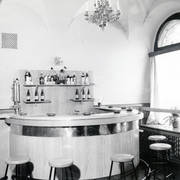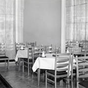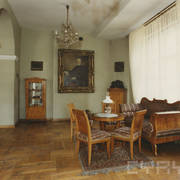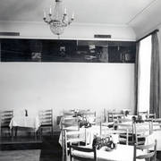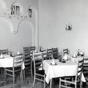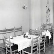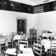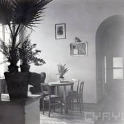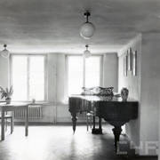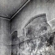 Wnętrze kamienicy nr 41 w pierzei wschodniej Starego Rynku w czasie powojennej odbudowy, pokój od podwórza na pierwszym piętrze z arkadkami na ścianie południowej05.1955