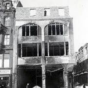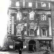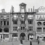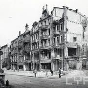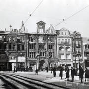 Zniszczona w czasie działań wojennych kamienica nr 73/74 w zachodniej pierzei Starego Rynku - dawna siedziba Banku Przemysłowców, powstała według projektu Rogera Sławskiego po wyburzeniu w 1908 roku dwóch kamienic19.05.1945