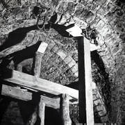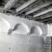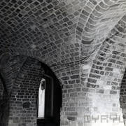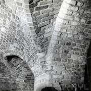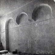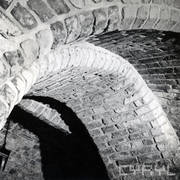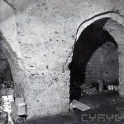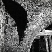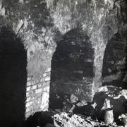 Piwnice kamienicy nr 41 w pierzei wschodniej Starego Rynku w czasie powojennej odbudowy, część przypodwórzowa południowa z arkadami ostrołukowymi05.1955