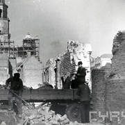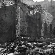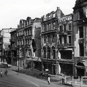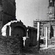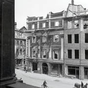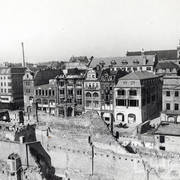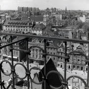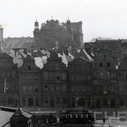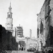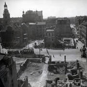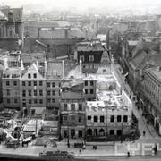 Widok z rusztowania ratusza ku zachodowi, na pierwszym planie ruiny zabudowy śródrynkowej i zniszczone w wyniku działań wojennych kamienice w zachodniej pierzei Starego Rynku1947