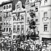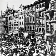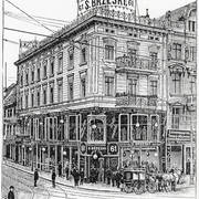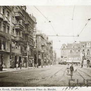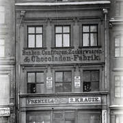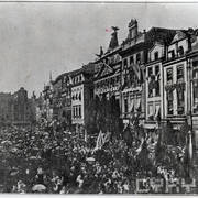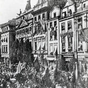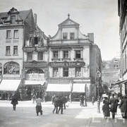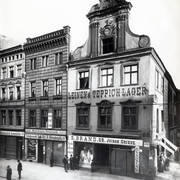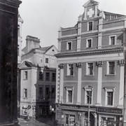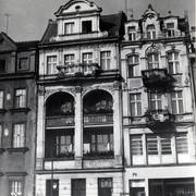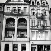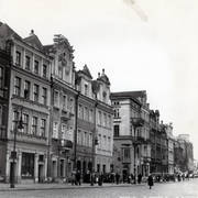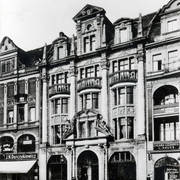 Kamienice nr 83 i 84 w zachodniej pierzei Starego Rynku, z lewej widoczny fragment dużego domu towarowego wybudowanego na miejscu zburzonych kamienic nr 80-821910–1914