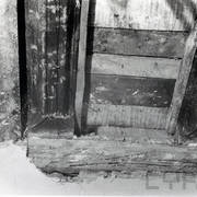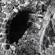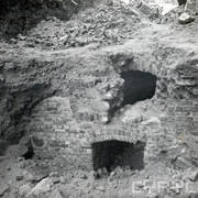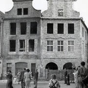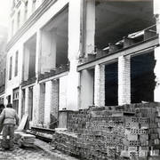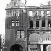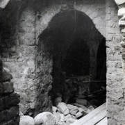 Odsłonięte w wyniku zniszczeń wojennych zamurowane wnęki w murze grodziżarowym w kamienicy nr 79 od strony sąsiedniej kamienicy nr 80 w zachodniej pierzei Starego Rynku07.1949
