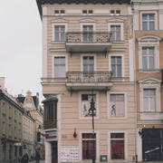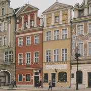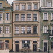 Kamienica narożnikowa nr 53/54 w południowej pierzei Starego Rynku, widok na elewację od strony ul. Świętosławskiej po przeprowadzonej w 1987 roku konserwacji1988
