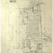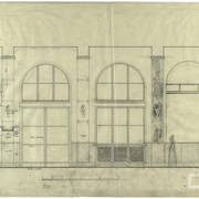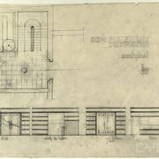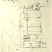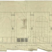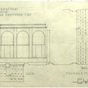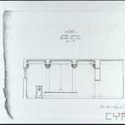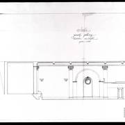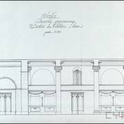 Rysunek projektowy loży i balkonu w sali parterowej domu parafialnego przy kościele św. Marcina