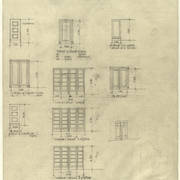 Plan jednej z sal na I piętrze domu parafialnego przy kościele św. Marcina oraz projekty szaf