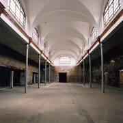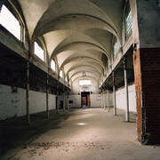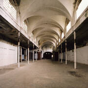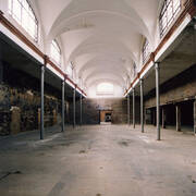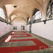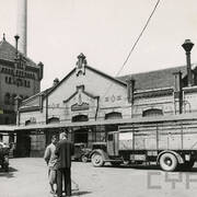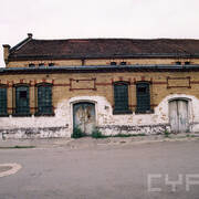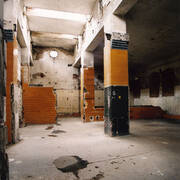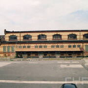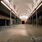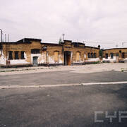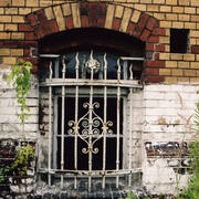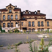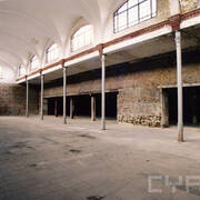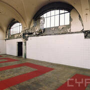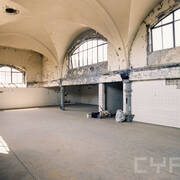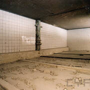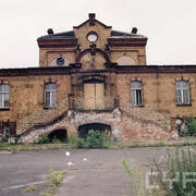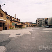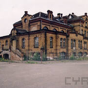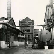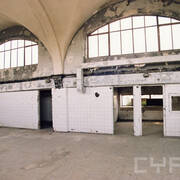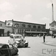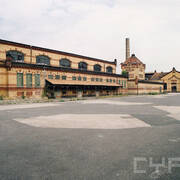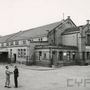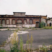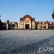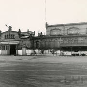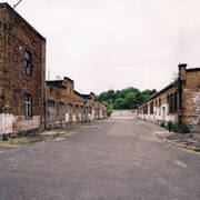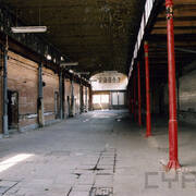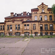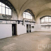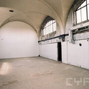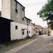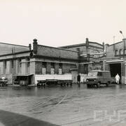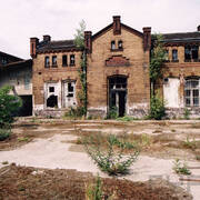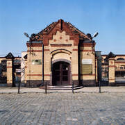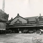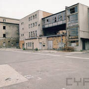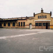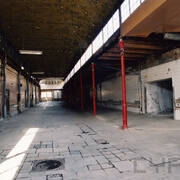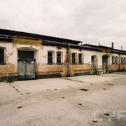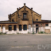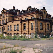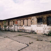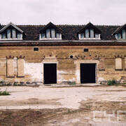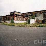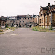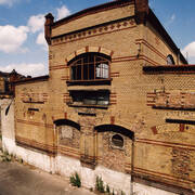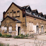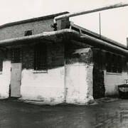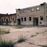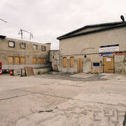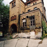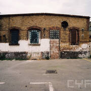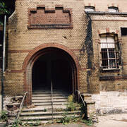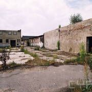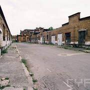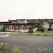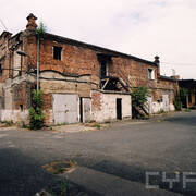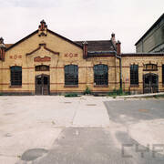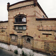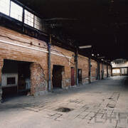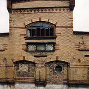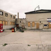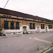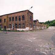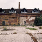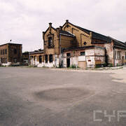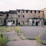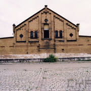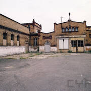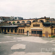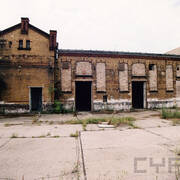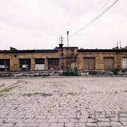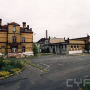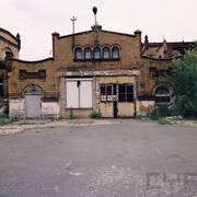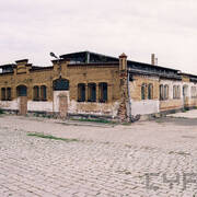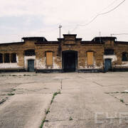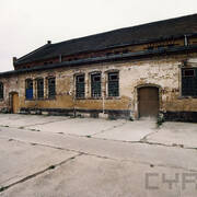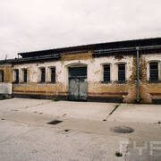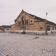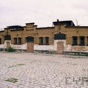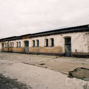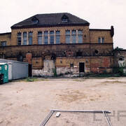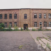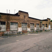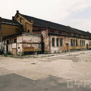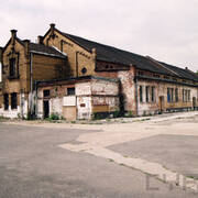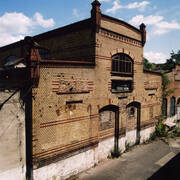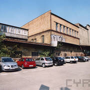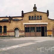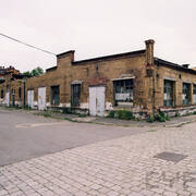 Zabudowania rzeźni miejskiej na Garbarach, z lewej zespół hali uboju świń, z prawej wejście do hali łącznikowej centralnego zespołu produkcyjnego16.06.2011