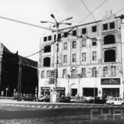 Wschodnia pierzeja Al. Marcinkowskiego między ulicami Paderewskiego i Podgórną, pierwszy z lewej hotel Bazar w czasie remontu, na pierwszym planie nieczynna fontanna na pl. Wolności1990–1999