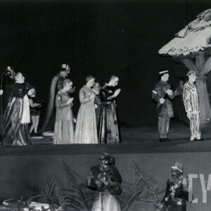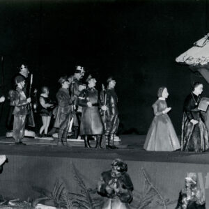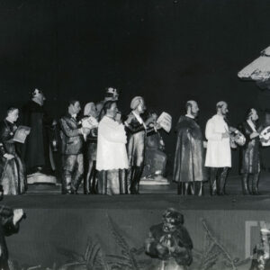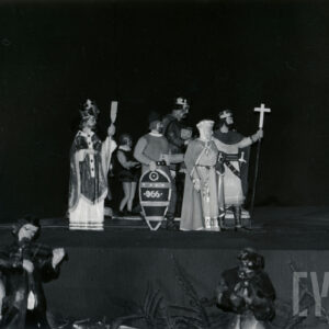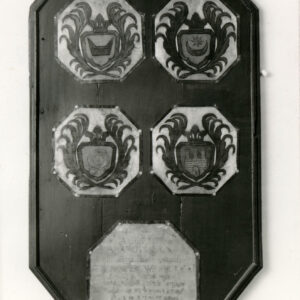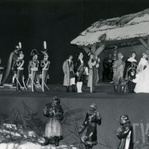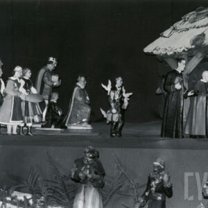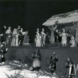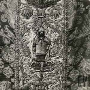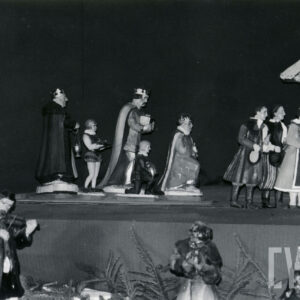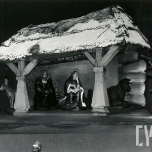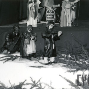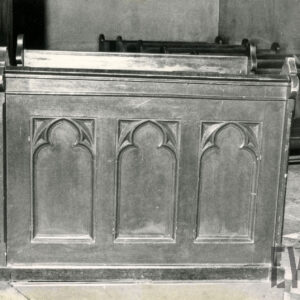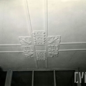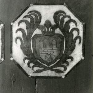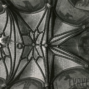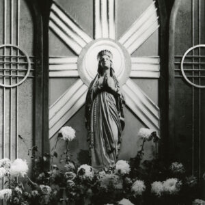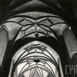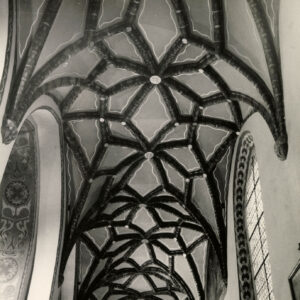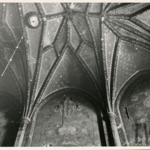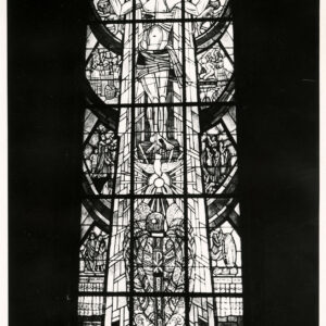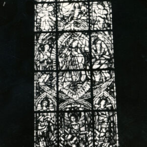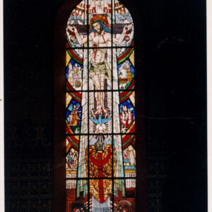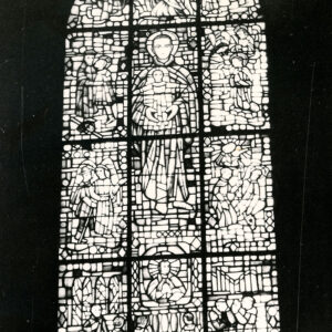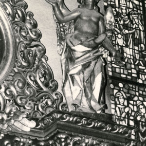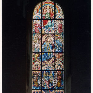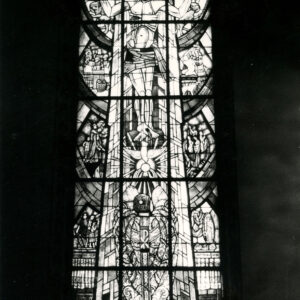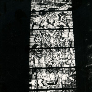 1974–1975Święty Wojciech przeprawiający się przez Wisłę, witraż Stanisława Powalisza z 1957 roku za ołtarzem głównym kościoła św. Wojciecha