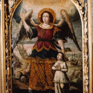 Obraz Anioł Stróż namalowany przez Krzysztofa Boguszewskiego w 1635 roku w retabulum ołtarza Aniołów Stróżów w kościele św. Wojciecha