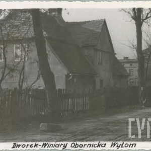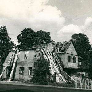2003murowany dom z cegieł, pokryty dachówką, otoczony płotem i drzewami; budynek stoi przy nieutwardzanej drodze
