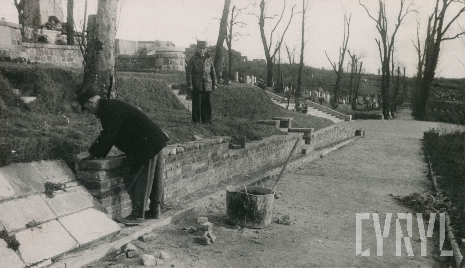 1961Rzeźba „Pielgrzym” na nagrobku Andrzeja Kaźmierczaka (zm. 1922) na starym cmentarzu św. Wojciecha na stokach Cytadeli