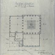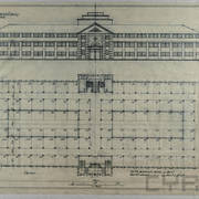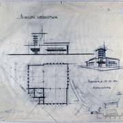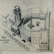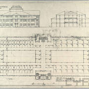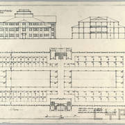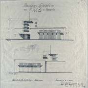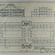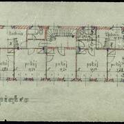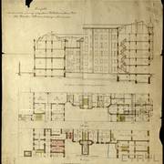 Wstępny projekt budynku Banku Włościańskiego przy pl. Wilhelmowskim (dzisiaj pl. Wolności), przedstawiający rzuty kondygnacji, przekrój i widok od strony podwórza10.06.1897