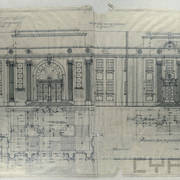 Wstępny projekt elewacji z fragmentem przekroju budynku Banku Włościańskiego przy pl. Wilhelmowskim (dzisiaj pl. Wolności) Stanisława Boreckiego z 1898 r.28.01.1898