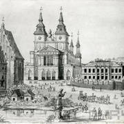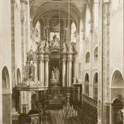 Wnętrze katedry poznańskiej w XVII wieku, reprodukcja miedziorytu opublikowana w pierwszym tomie "Dziejów archidiecezji poznańskiej" ks. prof. dr. J. Nowackiego1689
