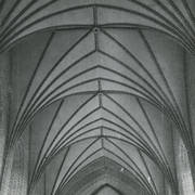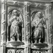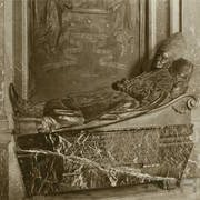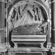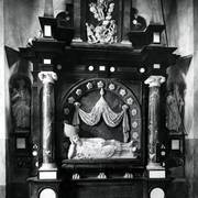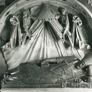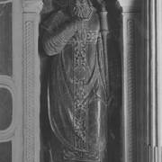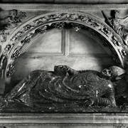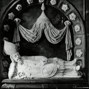 Fragment nagrobku biskupa Wawrzyńca Goślickiego (zm. 1607) w kaplicy św. Marcina w katedrze, postać biskupa umieszczona we wnęce pod baldachimem przytrzymywanym przez anioły1944