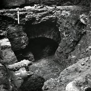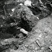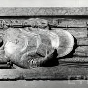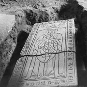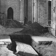 Gotycka płyta nagrobna dziekana kapituły poznańskiej Teodoryka Pradela (zm. 1383) odkryta pod posadzką nawy południowej katedry w czasie powojennych badań archeologicznych05.1954