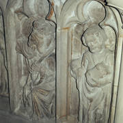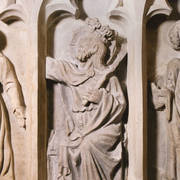 Płaskorzeźba z klęczącymi postaciami czterech synów i dwóch córek Andrzeja I Górki i jego żony Barbary z Kurozwęk, fragment renesansowego, piętrowego nagrobka Górków, autorstwa Hieronima Canavesiego1998