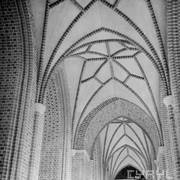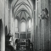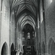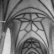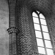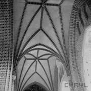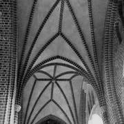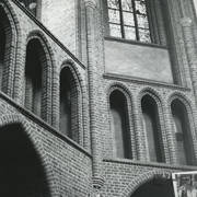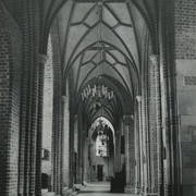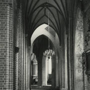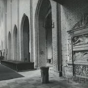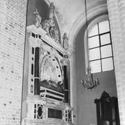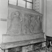 Fragment południowej ściany nawy głównej z nagrobkiem piętrowym Janusza i Anny Przecławskich sprowadzonym ze zrujnowanego kościoła pw. Ścięcia św. Jana Chrzciciela w Chojnicy1969