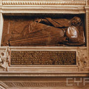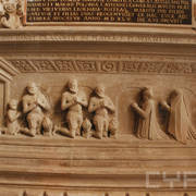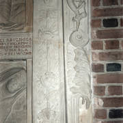 Sygnatura autora Hieronima Canavesiego, detal renesansowego, piętrowego nagrobka Andrzeja I Górki, kasztelana poznańskiego i starosty generalnego Wielkopolski (zm. 1551) i jego żony Barbary z Kurozwęk (zm. 1545)