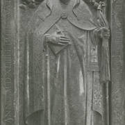 Płyta piaskowcowa z brązową, rytowaną postacią przedstawiająca prawdopodobnie zmarłego w 1494 roku dziekana kapituły poznańskiej Adama Dąbrowskiego w katedrze1931