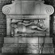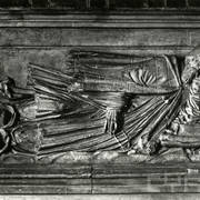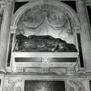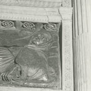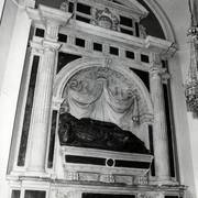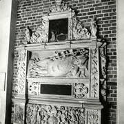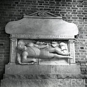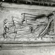 Centralny fragment renesansowego nagrobka z figurą zmarłego biskupa Benedykta Izdbieńskiego (zm. 1553) i personifikacjami Wiary i Sprawiedliwości, autorstwa Jana Michałowicza z Urzędowa w obejściu katedry1968