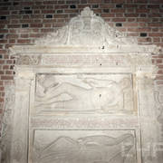 Prawy detal piaskowcowego nagrobka piętrowego Anny (zm. 1598) i Janusza (zm. 1595) Przecławskich sprowadzonego w 1954 roku ze zrujnowanego kościoła w Chojnicy pod emporą katedry po konserwacji2005
