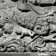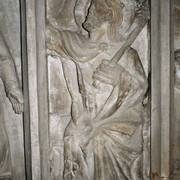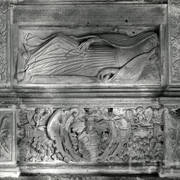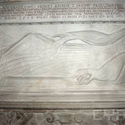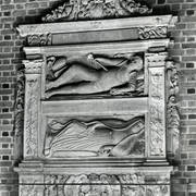 Fragment cokołu renesansowego, piętrowego nagrobka Andrzeja I Górki, kasztelana poznańskiego i starosty generalnego Wielkopolski (zm. 1551) i jego żony Barbary z Kurozwęk (zm. 1545), autorstwa Hieronima Canavesiego1995