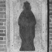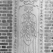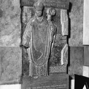 Płyta piaskowcowa z brązową, rytowaną postacią przedstawiająca prawdopodobnie zmarłego w 1494 roku dziekana kapituły poznańskiej Adama Dąbrowskiego w katedrze1973
