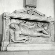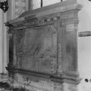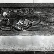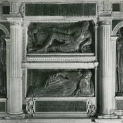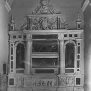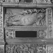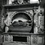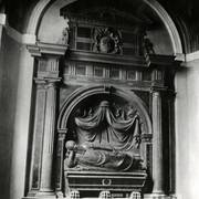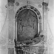 Fragment renesansowego, piętrowego nagrobka Górków z postacią zmarłego Andrzeja I Górki, kasztelana poznańskiego i starosty generalnego Wielkopolski (zm. 1551) w kaplicy Najświętszego Sakramentu (Górków)1943