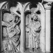 Zachowane ze zniszczonego gotyckiego nagrobka Bolesława Chrobrego płaskorzeźby przedstawiające Chrystusa Króla oraz św. Piotra będące fragmentem sarkofagu Mieszka I i Boleslawa Chrobrego w Złotej Kaplicy w katedrze1998