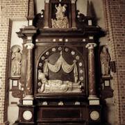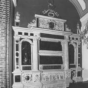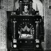 Centralny fragment wczesnobarokowego nagrobku biskupa Adama Nowodworskiego (zm. 1634), wykonany w gdańskim warsztacie Wilhelma Richtera, w obejściu katedry1919–1939