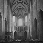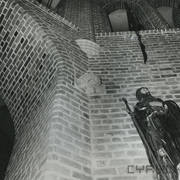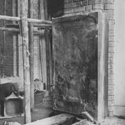 Próba umieszczenia płyty piaskowcowej z brązową, rytowaną postacią przedstawiająca prawdopodobnie zmarłego w 1494 roku dziekana kapituły poznańskiej Adama Dąbrowskiego w katedrze w czasie odbudowy po zniszczeniach wojennych1952