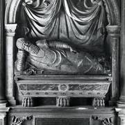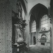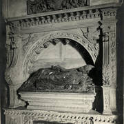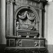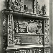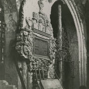 Nagrobek biskupa Wawrzyńca Goślickiego (zm. 1607) w kaplicy św. Marcina w katedrze, postać biskupa umieszczona we wnęce pod baldachimem przytrzymywanym przez anioły, w dolnej części tablica inskrypcyjna1943