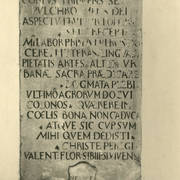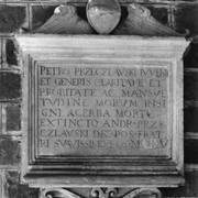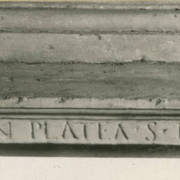 Fragment łacińskiej inskrypcji na renesansowym, piętrowym nagrobku Andrzeja I Górki, kasztelana poznańskiego i starosty generalnego Wielkopolski (zm. 1551) i jego żony Barbary z Kurozwęk (zm. 1545), autorstwa Hieronima Canavesiego1995