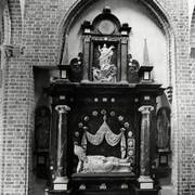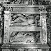 Piaskowcowy nagrobek piętrowy Anny (zm. 1598) i Janusza (zm. 1595) Przecławskich sprowadzony w 1954 roku ze zrujnowanego kościoła w Chojnicy pod emporą katedry10.1964