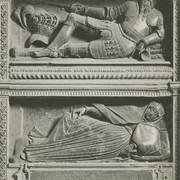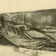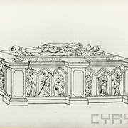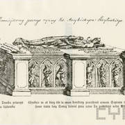Dawny piaskowcowy nagrobek Bolesława Chrobrego na zaginionym rysunku, który znajdował się w zbiorach Muzeum Lubomirskich przy Zakładzie Narodowym im. Ossolińskich we Lwowie