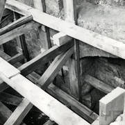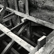 Odkryte pod nawą główną katedry poznańskiej relikty baptysterium z basenem chrzcielnicy, w głębi domniemane grobowce Mieszka I i Bolesława Chrobrego1998