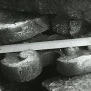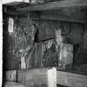 Lapidarium (detale rzeźbiarskie pozyskane w czasie powojennych wykopalisk i wydobyte z ruin świątyni) w krypcie II w podziemiach katedry w latach 70. XX wieku04.07.1978