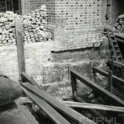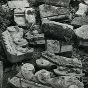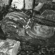 Zachowane ze zniszczonego gotyckiego nagrobka Bolesława Chrobrego płaskorzeźby przedstawiające Chrystusa Króla oraz św. Piotra będące fragmentem sarkofagu Mieszka I i Boleslawa Chrobrego w Złotej Kaplicy w katedrze31.05.1945