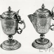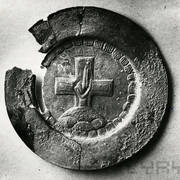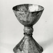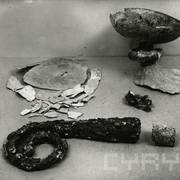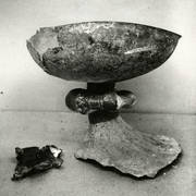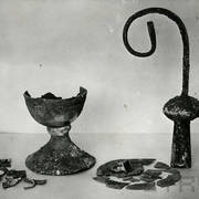 Kielich, patena i głowica ołowianego pastorału z 2. połowy XI lub początku XII wieku, odnalezione w czasie powojennych wykopalisk archeologicznych w grobie nr 731954
